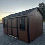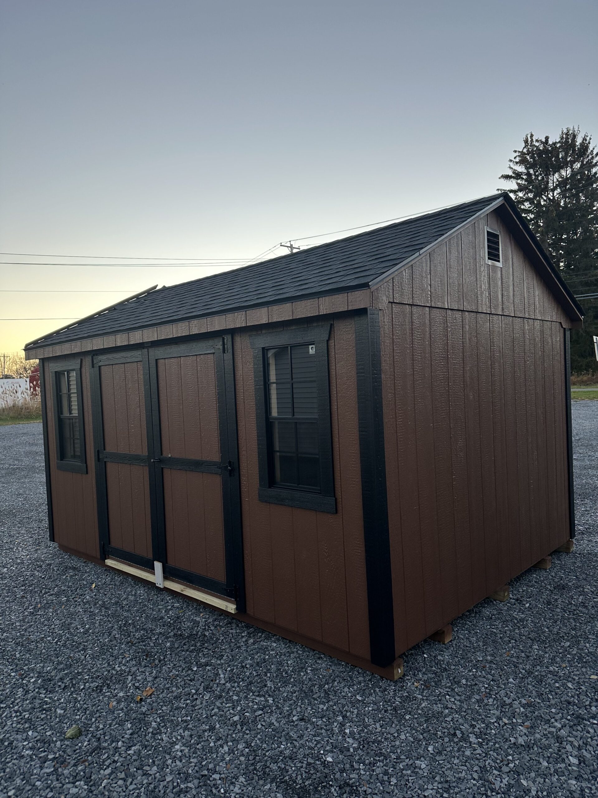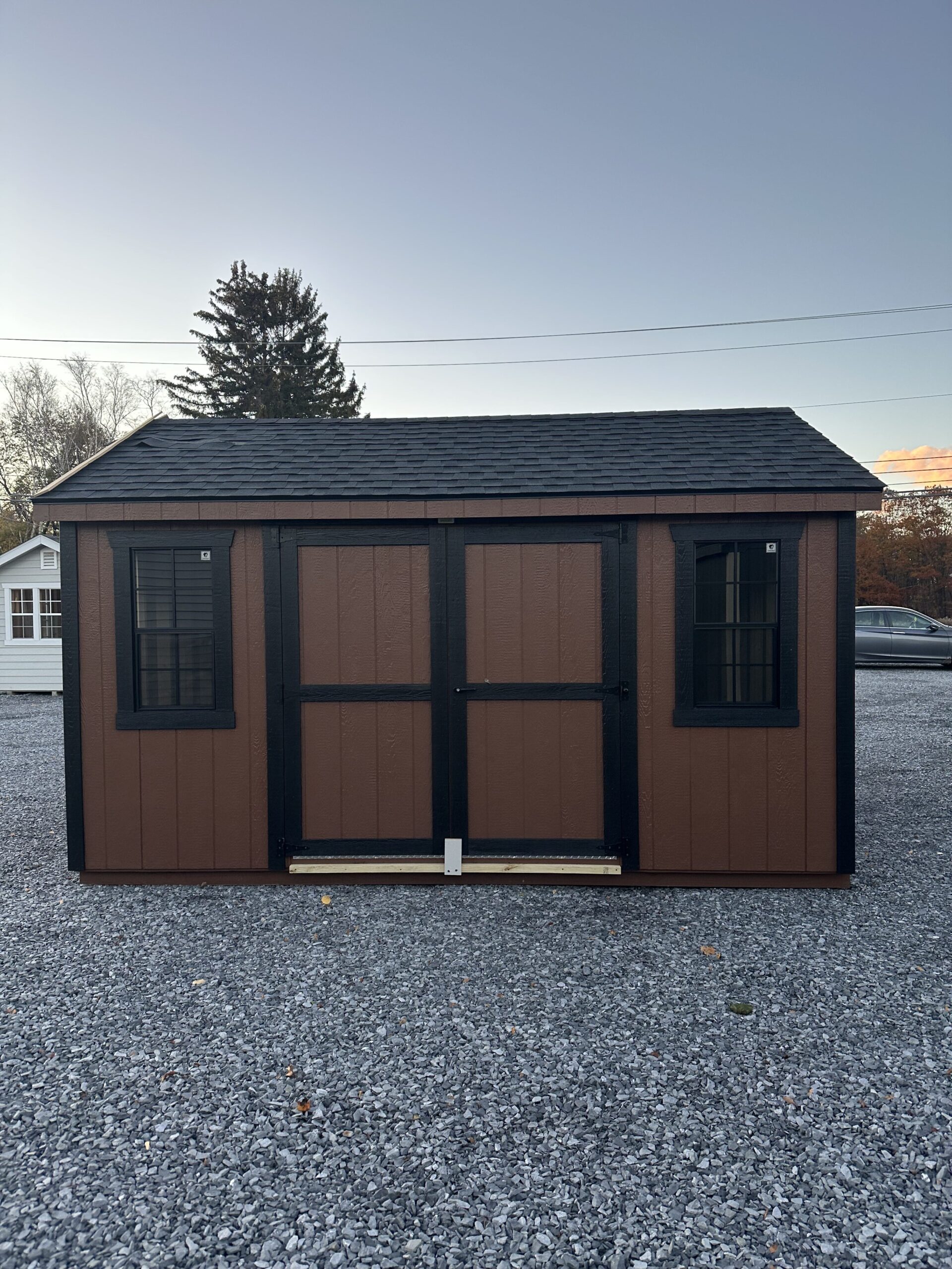 10' x 14' Smartside Cottage, 6' wide double doors, diamond plate and pressure treated ramp, 2 - 18"x36" windows w/ screens, 2 gable air vents, 3.5" miratec trim, 5/8" T&G PerformMax flooring