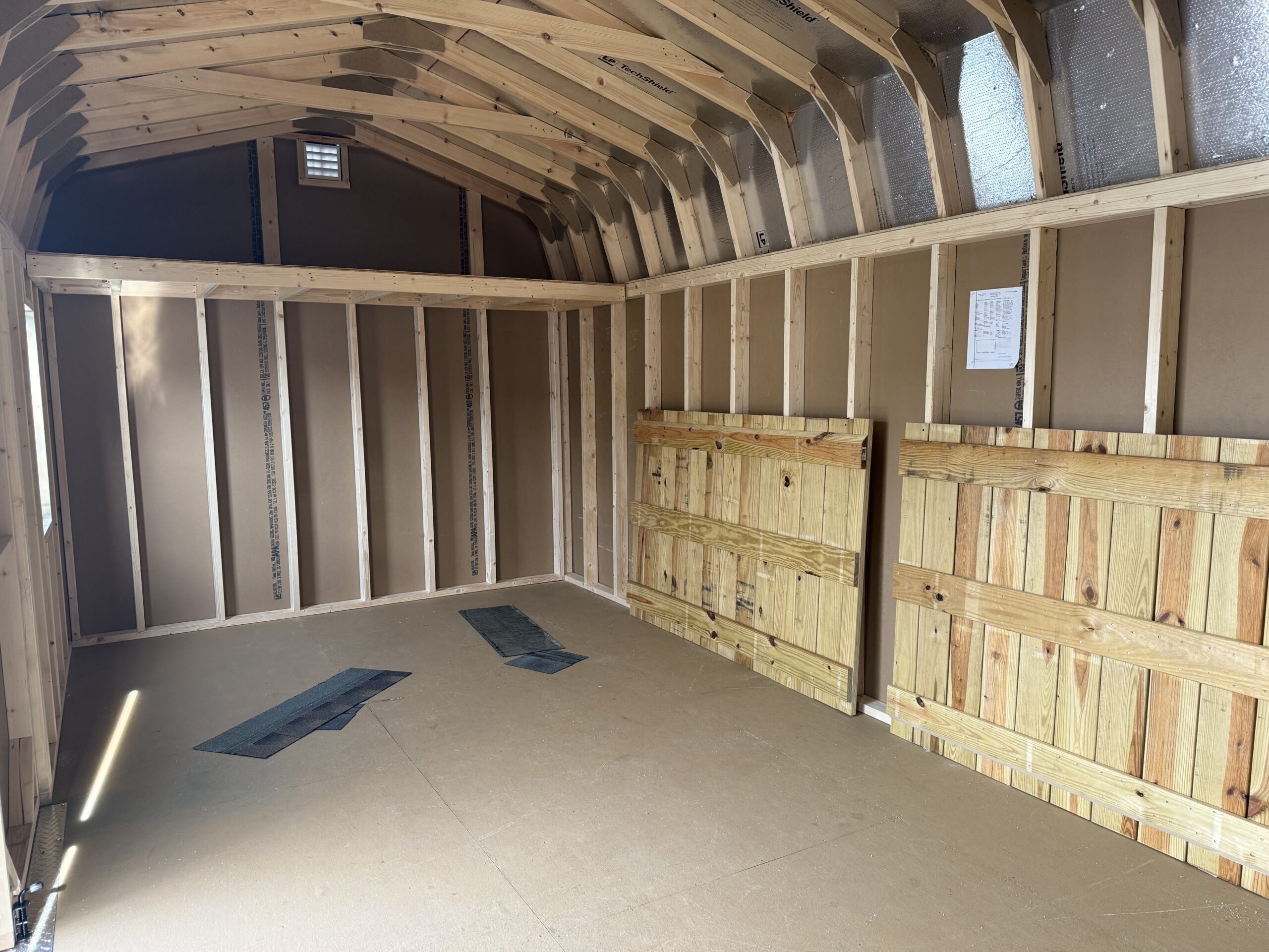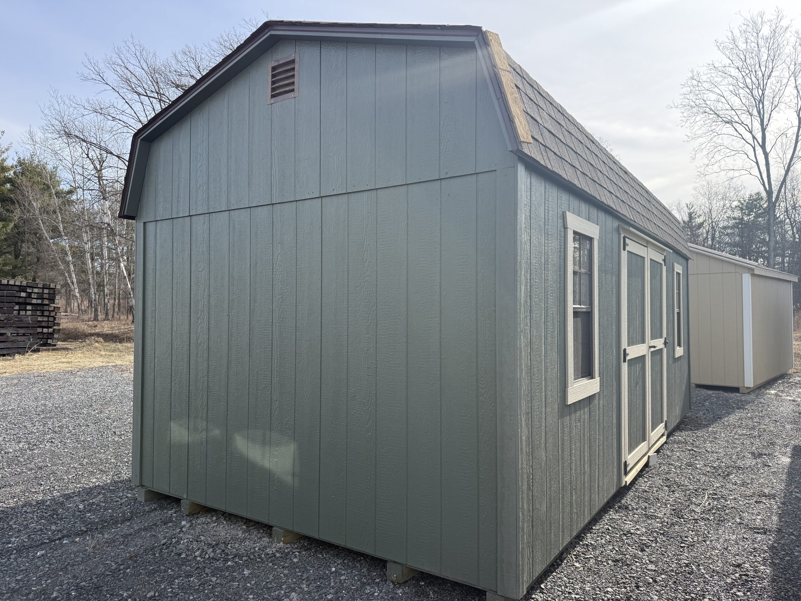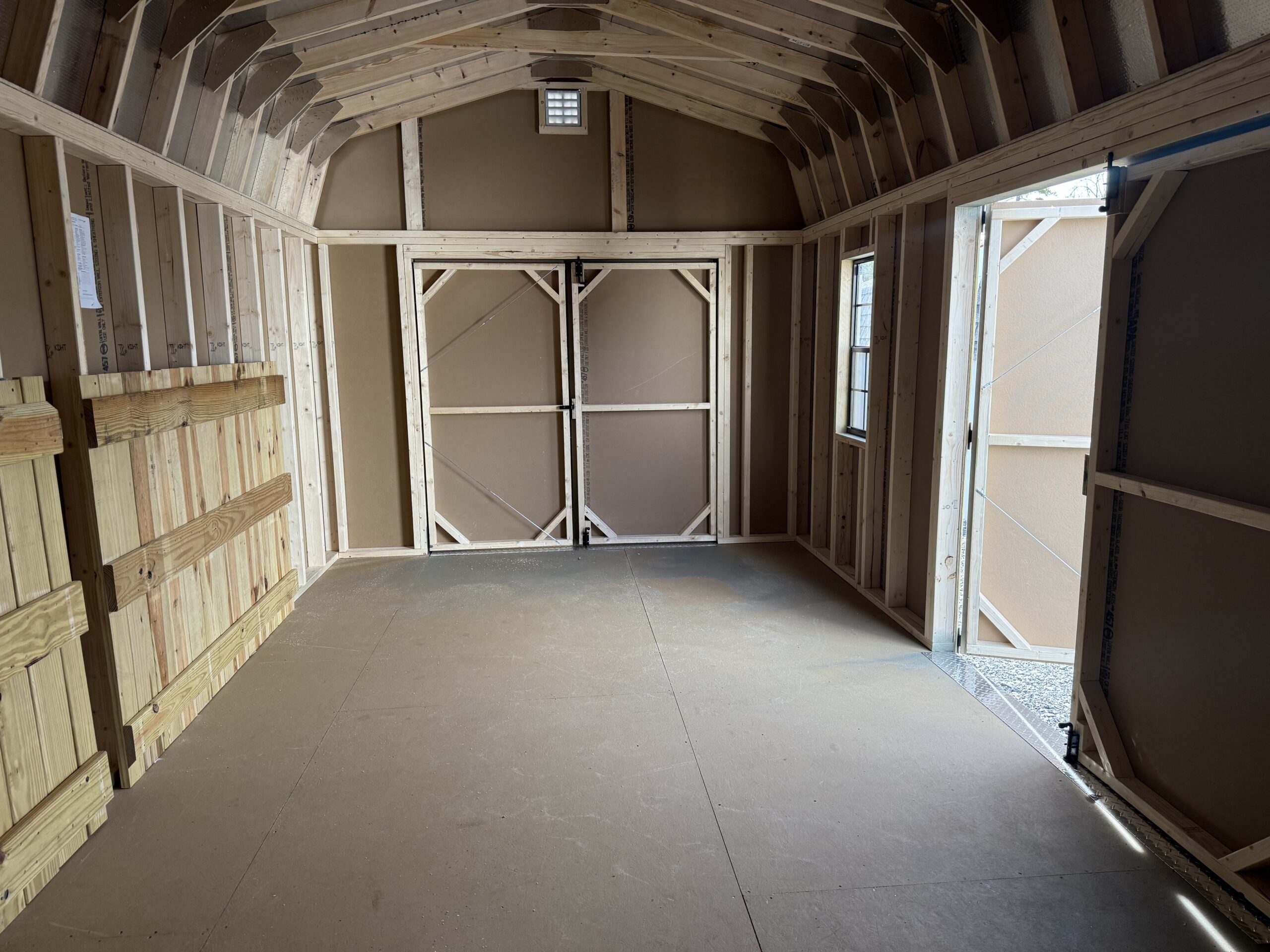 10'x20' Tall Barn w/ 6'2" sidewalls, 2 sets of 6' double doors w/ p.t. ramps & diamond plates, 3' loft, 2-18"x36" windows, 16" on center floor joists, 5/8" PerformMax T&G flooring, 2- gable air vents, 3.5" miratec trim