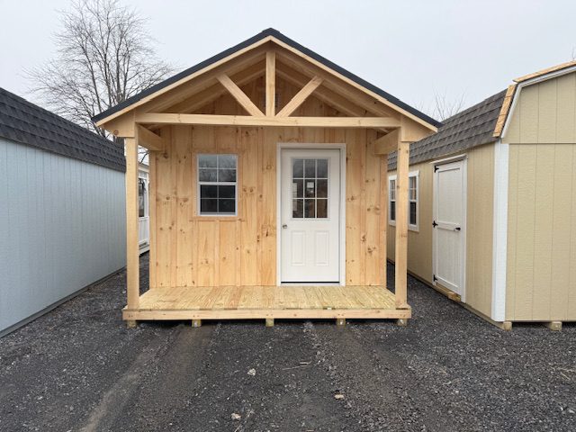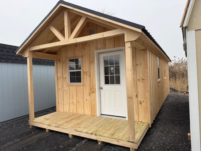S117 12’x28′ Pine Board & Batten Cabin w/ Porch 5% OFF