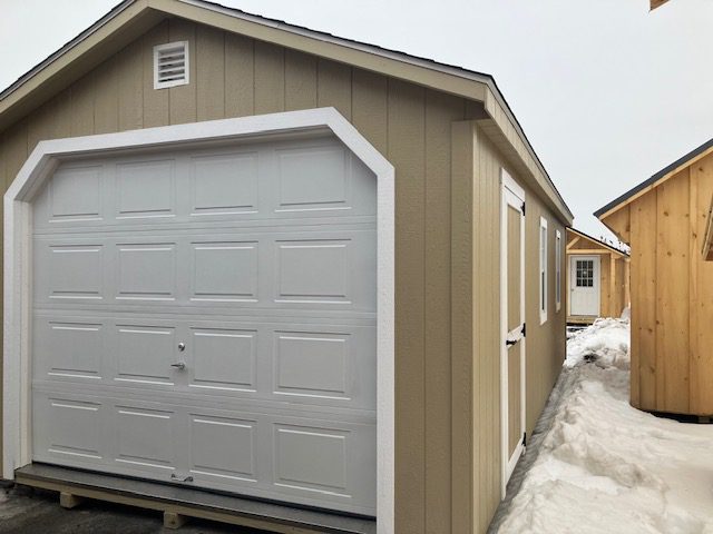 12 x 24 Preferred garage, 7' sidewalls, 9x7 raised panel garage door, diamond plate & P.T. ramp, 2-18 x 36" windows, 3' entry door, 10" gable overhang above garage door, 6/12 roof pitch, 1x6 miratec rake & face trim, 3/4" pressure treated floor, P.T. floor joist 12" on center