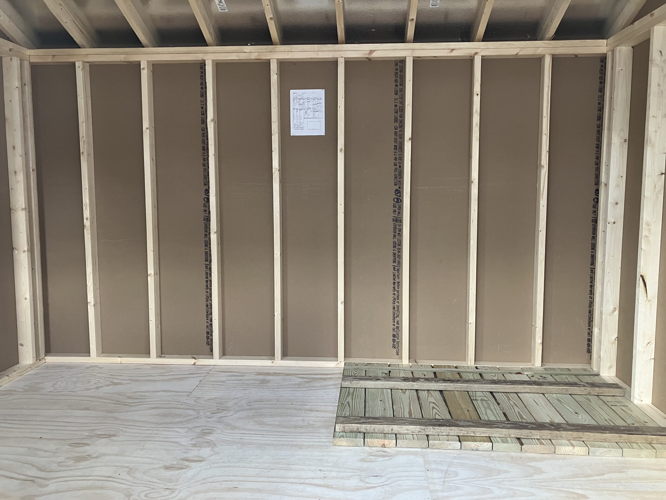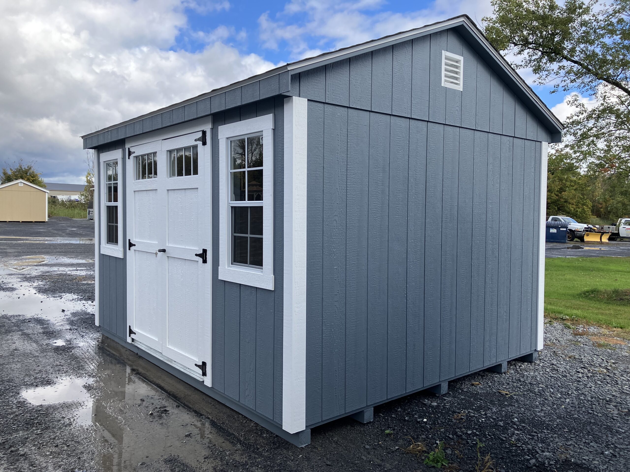10x12 Smartside Cottage, 5' double door, P.T. ramp & diamond plate, 2-18"x36" windows w/ screen, 2 gable air vents, 3.5" miratec trim, 5/8" T&G PerformMax flooring