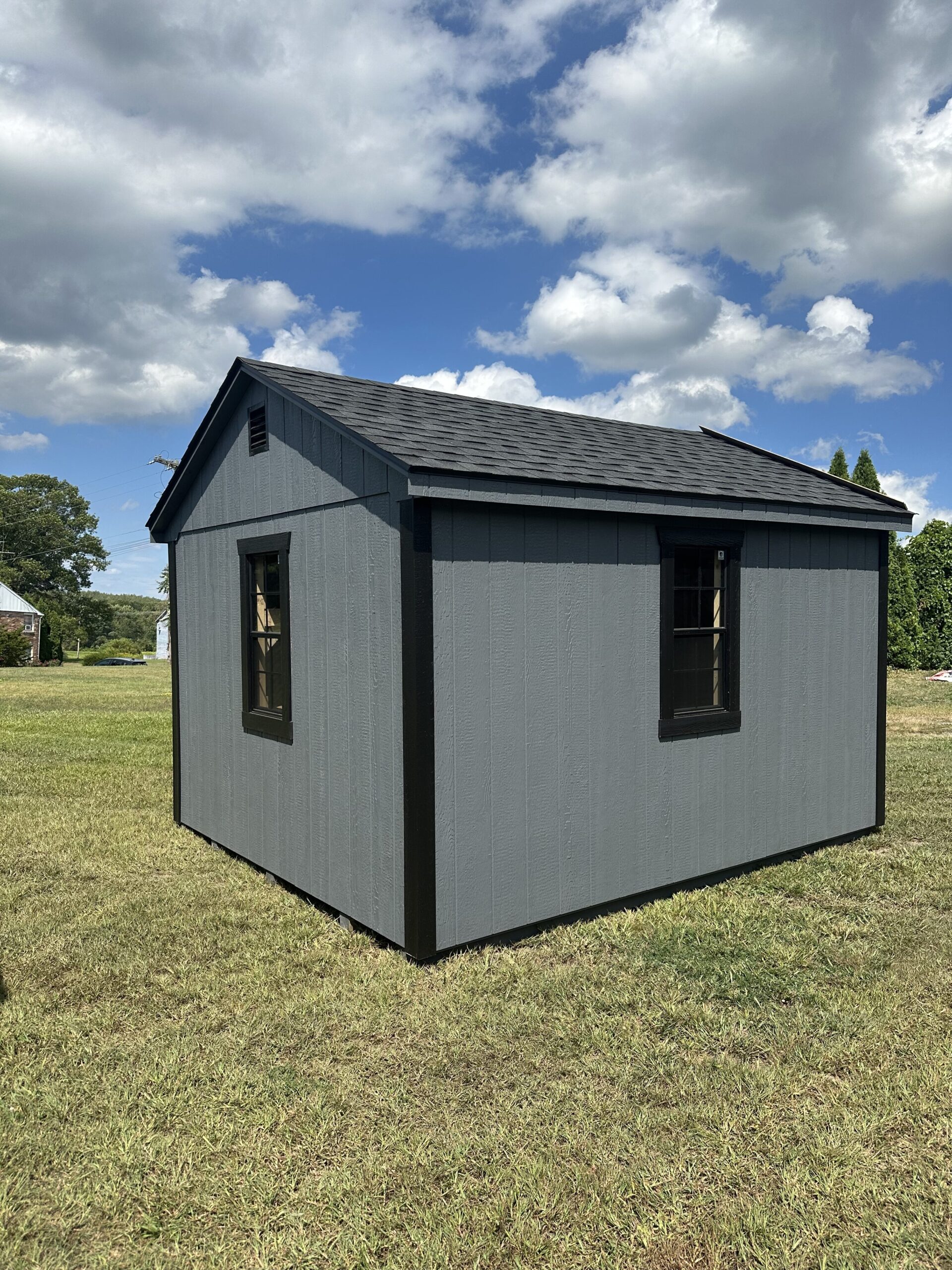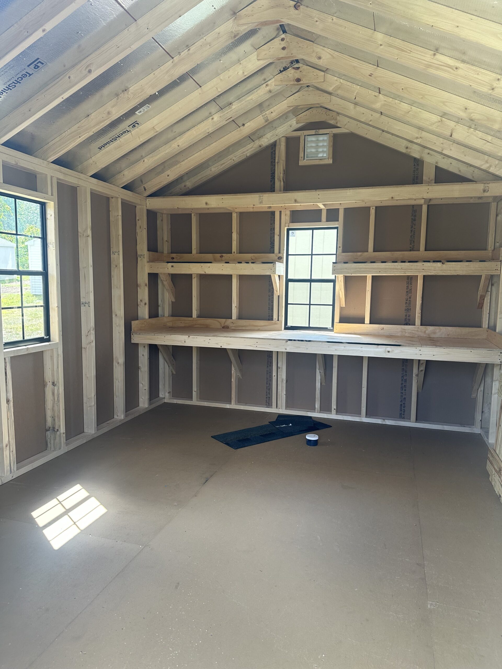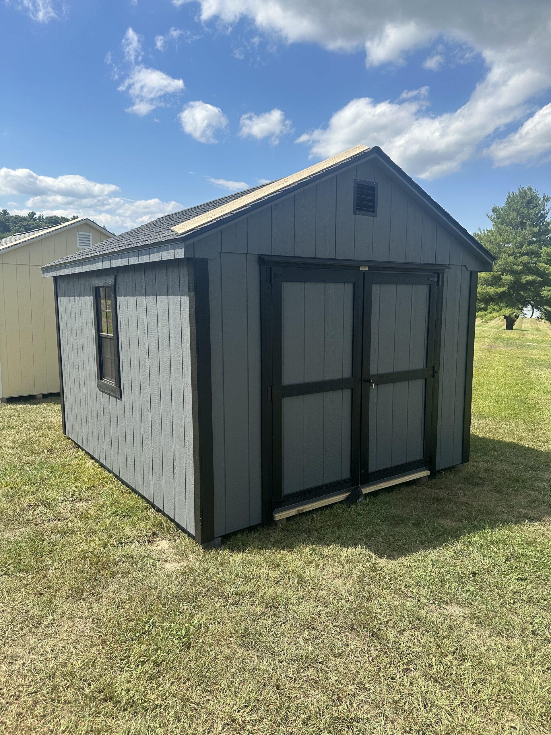 10x12 Smartside Cottage, 6' double door, P.T. ramp & diamond plate, workbench package, 2-18"x36" windows w/ screen, 2 gable air vents, 3.5" miratec trim, 5/8" T&G PerformMax flooring